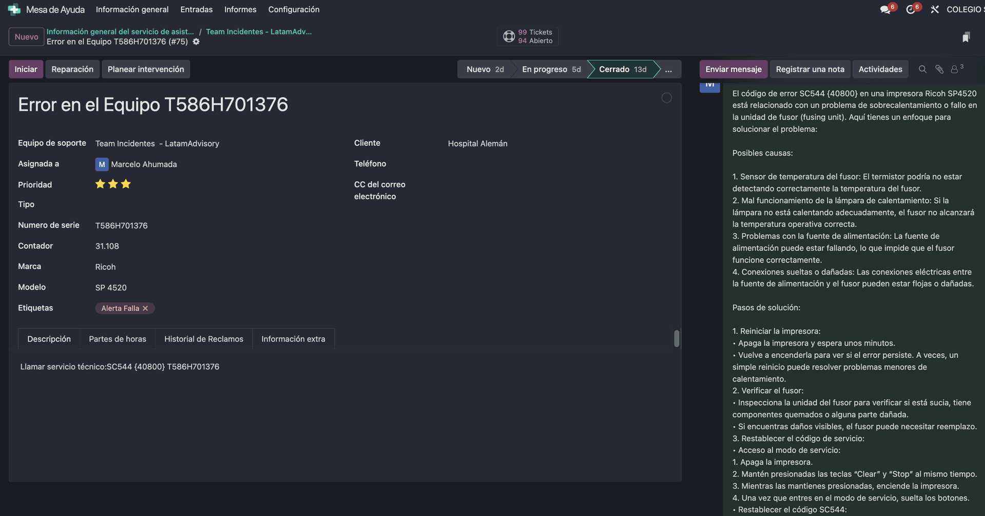 Gracias a su Asistente de Inteligencia Artificial generativa, provee diagnósticos y alimenta la base de conocimientos en tiempo real, reduciendo significativamente los tiempos de solución.